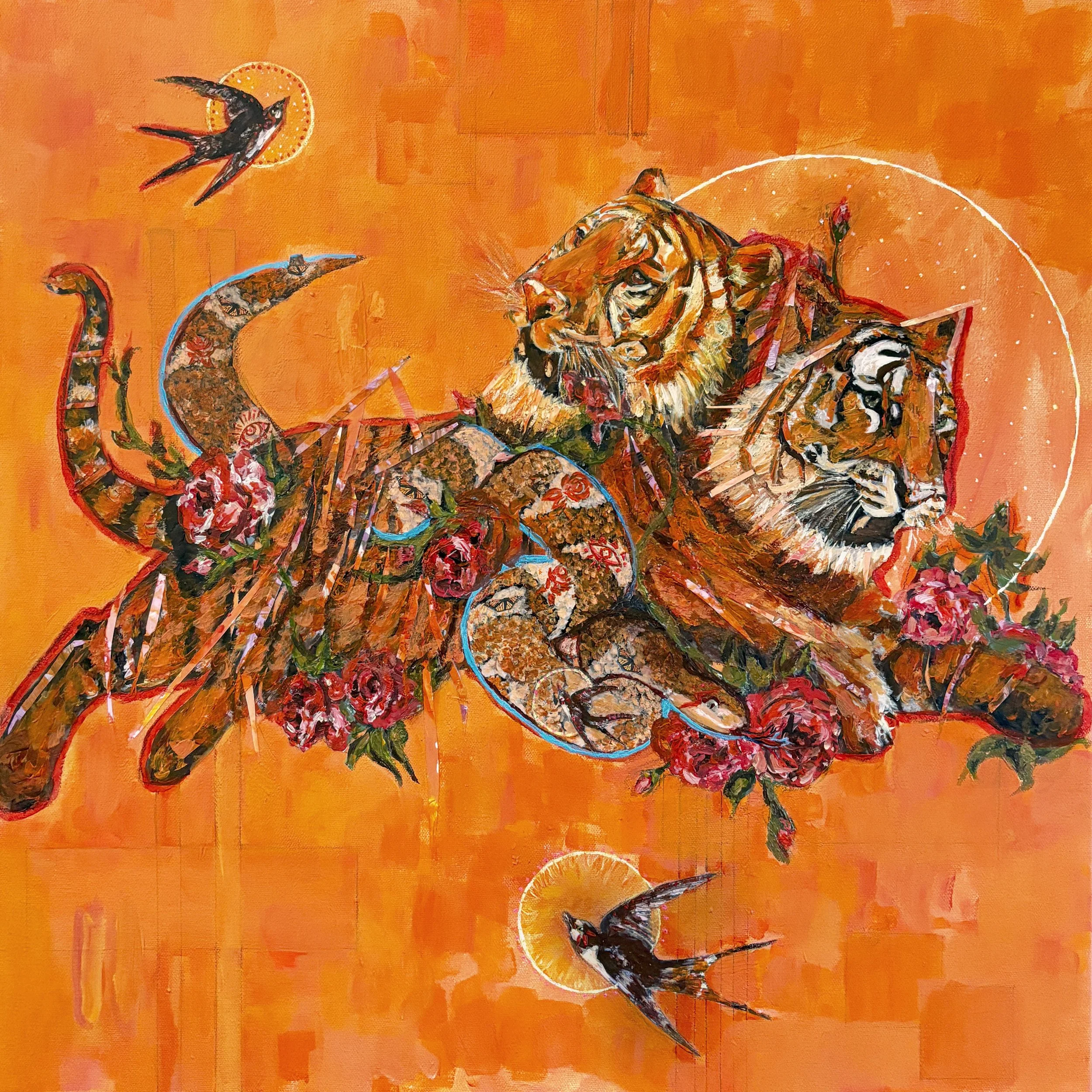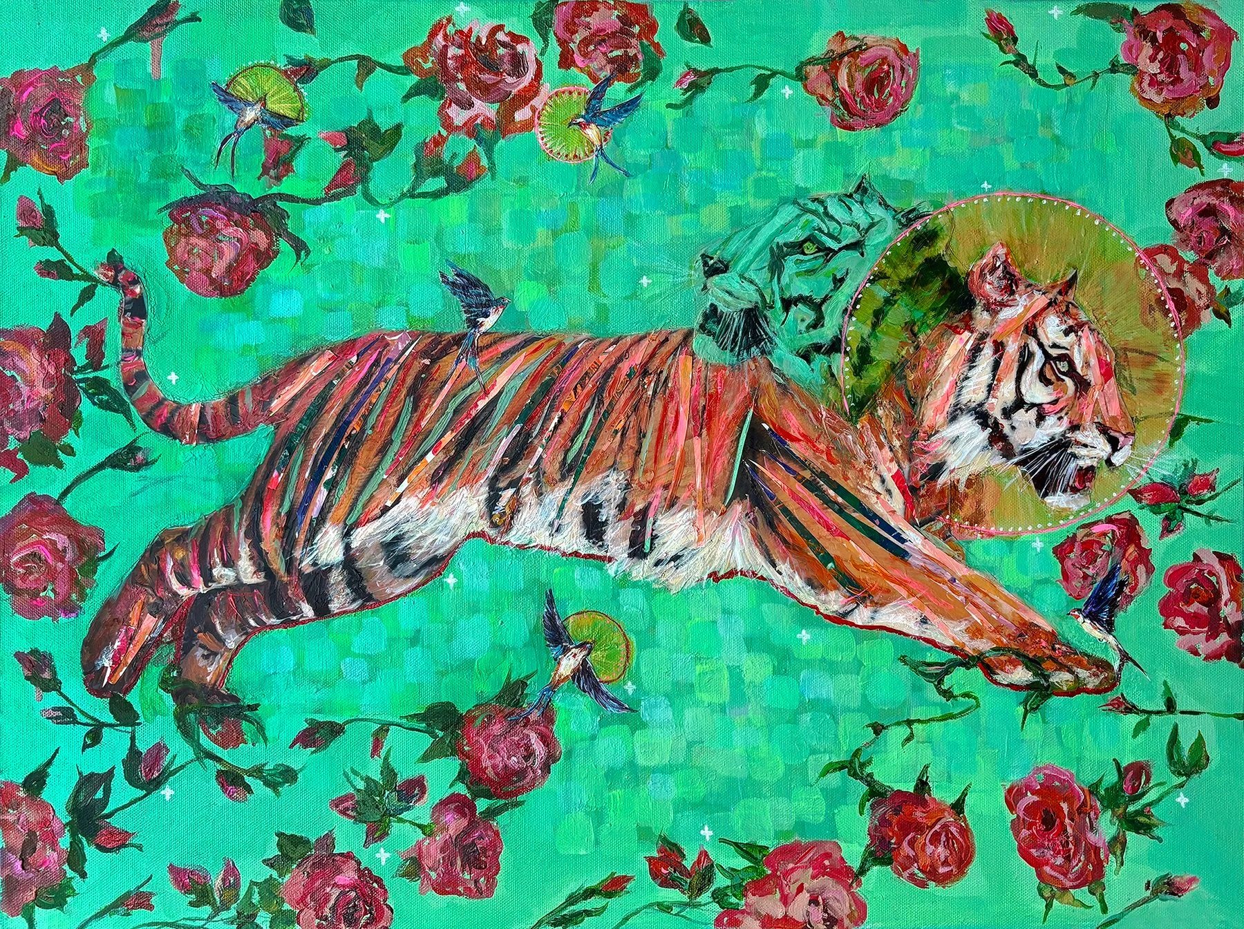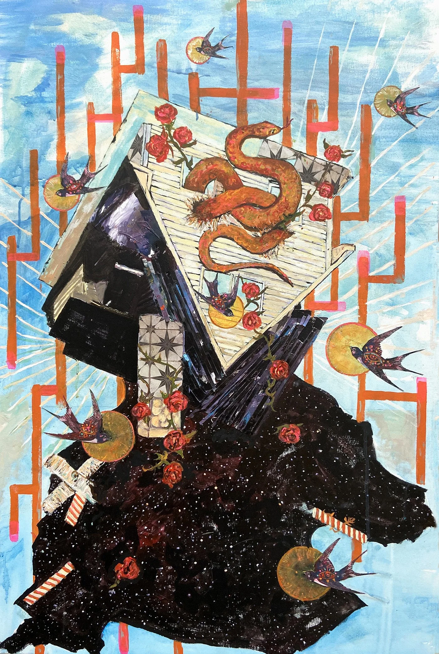 Oil, acrylic + cut paper on canvas