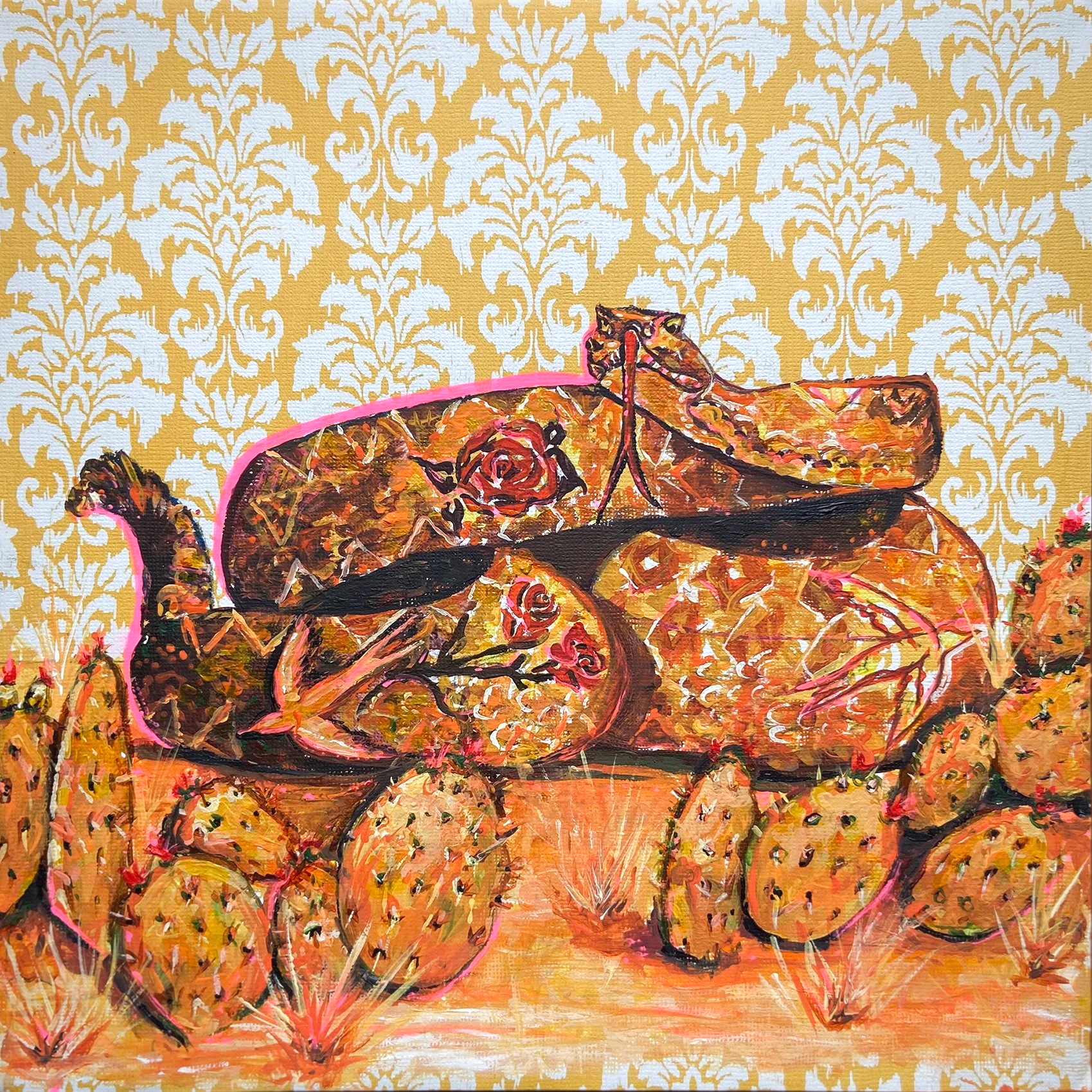 Acrylic on wallpaper + canvas