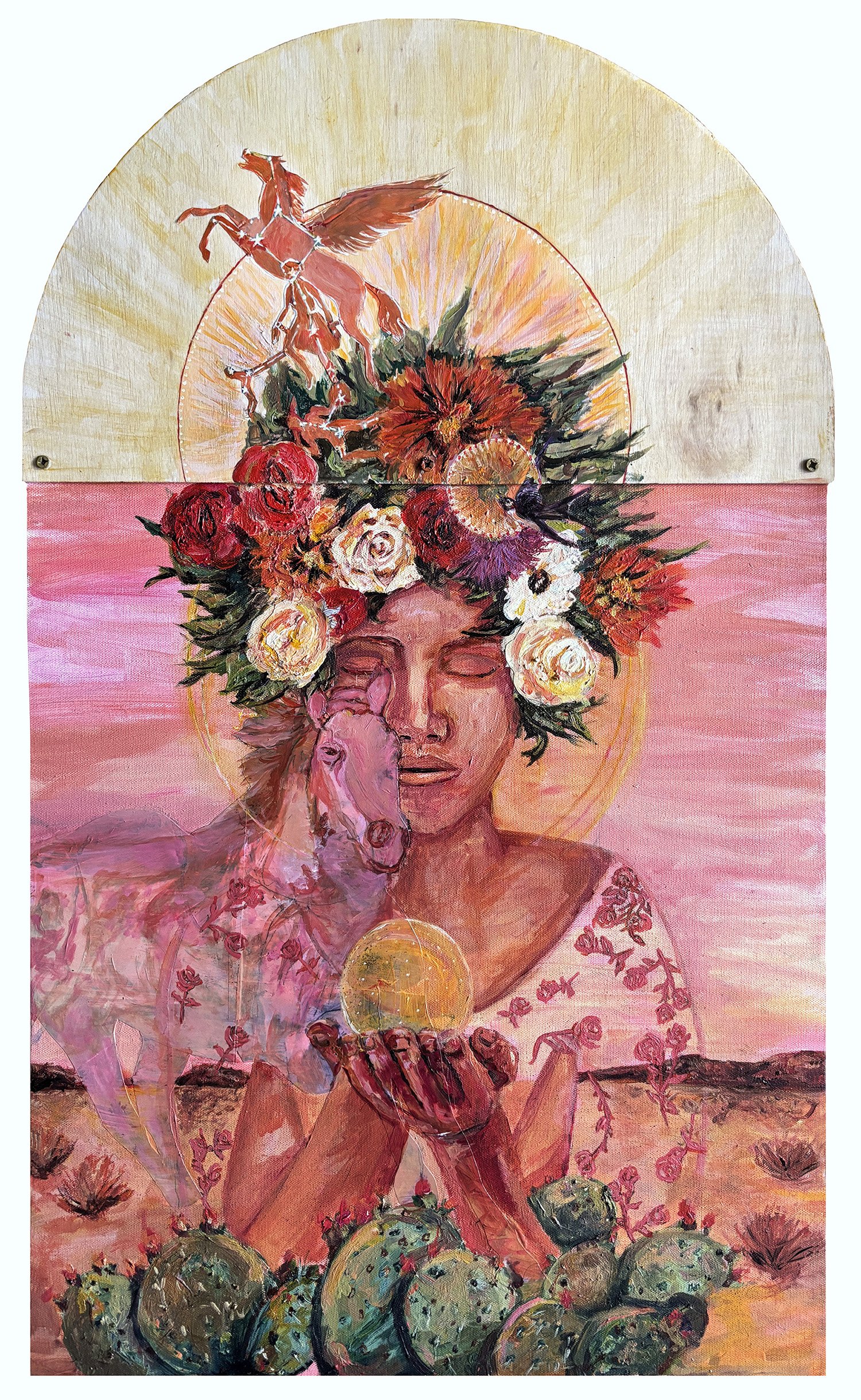 Oil + acrylic on canvas + birch
